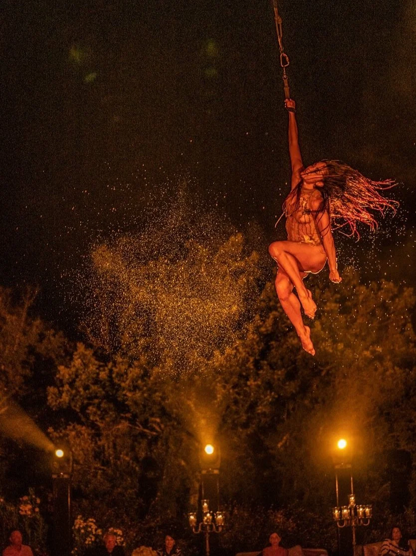 Aerialists & Unique Apparatuses: Watch in awe as our skilled aerialists soar through the air on traditional apparatuses like trapeze and aerial silk, as well as unique custom-made structures that will leave your guests breathless.