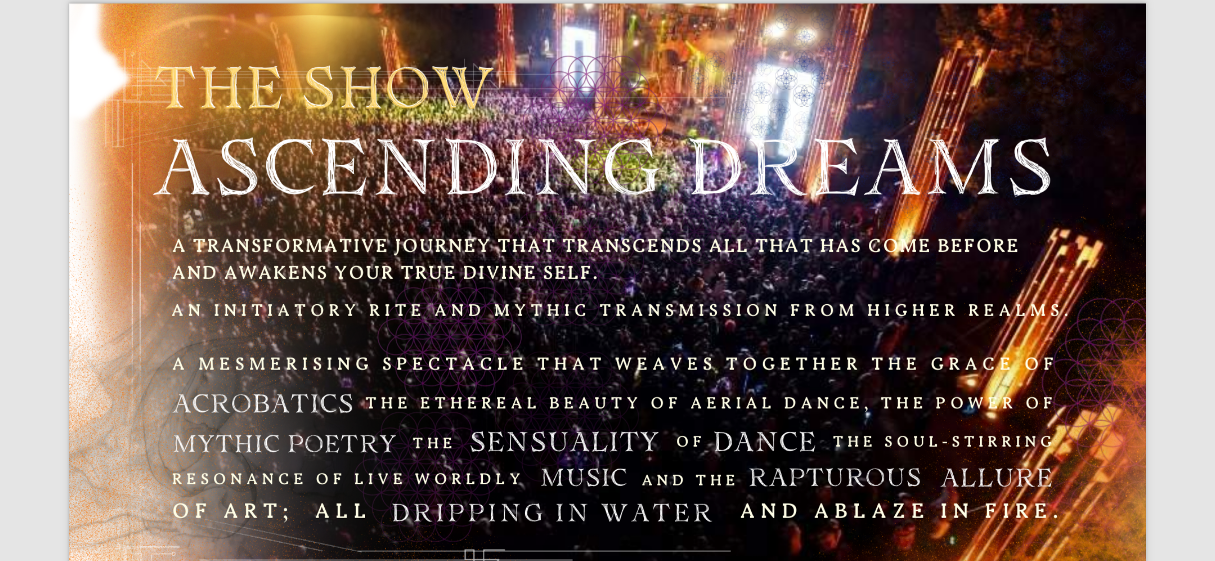 Live Shows: Experience our electrifying live shows featuring a mesmerizing blend of music, dance, circus arts, and interactive elements. From 30-minute showcases to full 90-minute productions, we'll keep your audience captivated from start to finish.